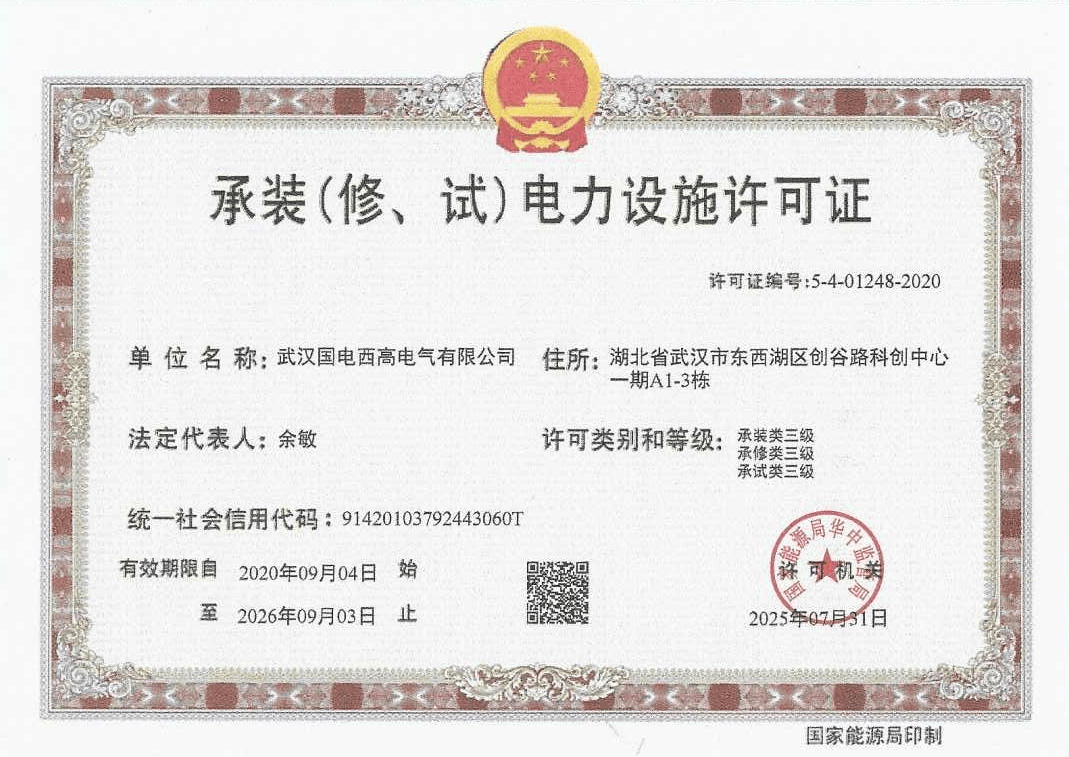 • 承裝(修、試)電力設施許可證:5-4-01248-2020