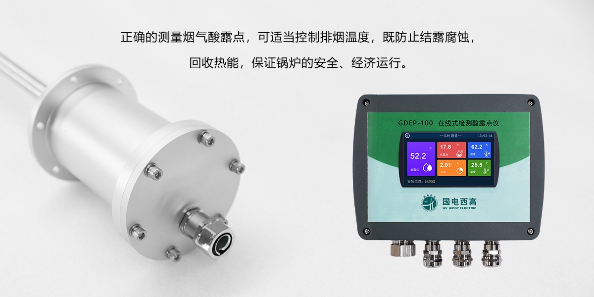 煤、石油等燃料中都含有一定量的硫,在燃燒過程中硫與氧結(jié)合生成二氧化硫和微量的三氧化硫。這些微量的三氧化硫使煙氣露點(diǎn)大大升高,當(dāng)鍋爐尾部受熱面的溫度低于煙氣露點(diǎn)時(shí)就會(huì)有濃度很高的硫酸溶液凝結(jié)在壁面上,造成嚴(yán)重腐蝕,因此,把這個(gè)露點(diǎn)稱為酸露點(diǎn)。正確的測(cè)量煙氣酸露點(diǎn),可以控制適當(dāng)?shù)呐艧煖囟龋确乐菇Y(jié)露腐蝕,又盡可能多地回收熱能,保證鍋爐的安全、經(jīng)濟(jì)運(yùn)行。
