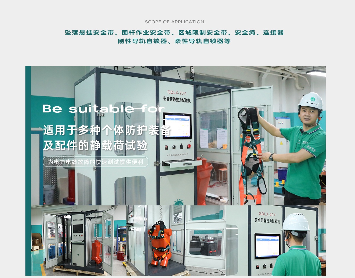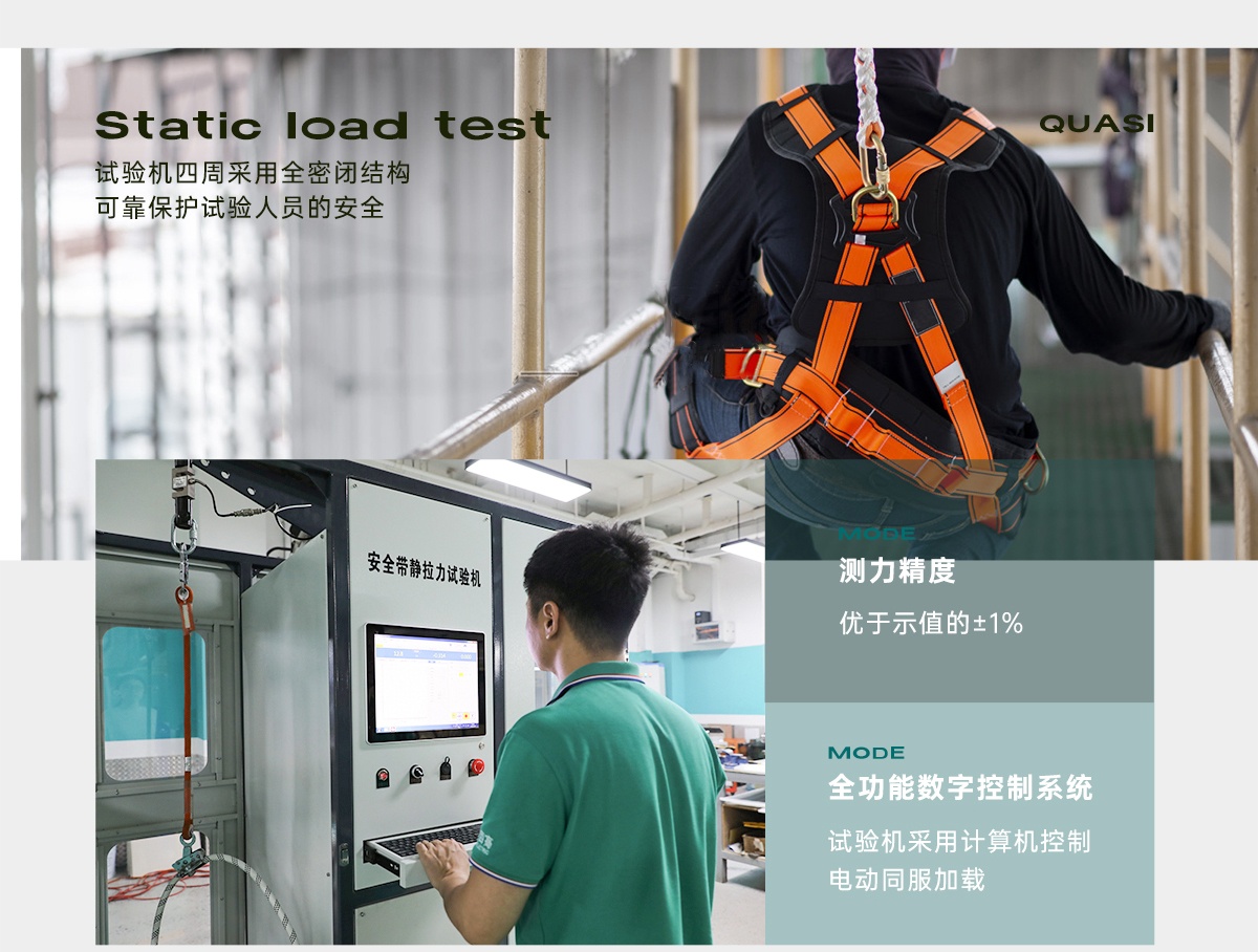 安全帶靜載試驗機適用于多種個體防護裝備及配件的靜載荷試驗。如:墜落懸掛安全帶、圍桿作業安全帶、區域限制安全帶、安全繩、連接器、剛性導軌自鎖器、柔性導軌自鎖器等。試驗機采用計算機控制,電動伺服加載,全功能數字控制系統,具有負荷、位移雙閉環控制功能。試驗機四周采用全密閉結構,可靠保護試驗人員的安全。具有加載平穩,控制精準高,低噪音,試驗效率高的特點。