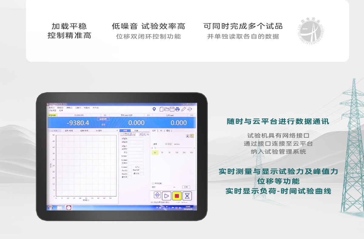 具有實時測量與顯示試驗力及峰值力、位移等功能,實時顯示負荷-時間試驗曲線。
