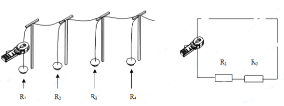 對多點接地系統(例如輸電系統桿塔接地、通信電纜接地系統、某些建筑物等),它們通過架空地線(通信電纜的屏蔽層)連接,組成了接地系統。見下左圖。其等效電路見下右圖。