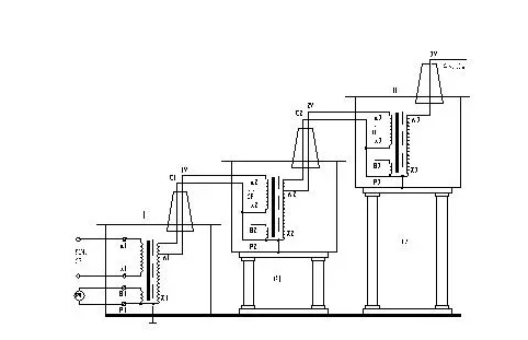 當兩臺試驗變壓器串級使用時,第一級與第二級試驗變壓器容量之比是2:1,總容量是第一級容量,總電壓是兩臺試驗變的最高輸出電壓之和,那么輸出電流就是總容量與總電壓之比。例如:5kVA/50kV與3kVA/50kV兩臺試驗變串級使用時,總容量為5kVA,總電壓為100kV,輸出電流就是5kVA/100kV也就是50mA。
