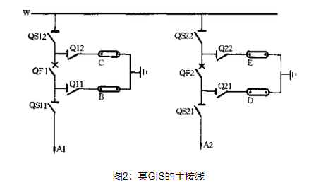 例如,測量圖2所示GIS的主同路電阻時,可以首先測量A1——A2之間的電阻,若三相測量數據與出廠數據差別較大或三相數據差別較大,應對測量回路分段,以找到有安裝缺陷的部件。如從B、C兩點通電測量,可以判斷斷路器QF1的接觸情況;從D、F兩點通電測量回路電阻,可以準確判斷斷路器QF2的接觸情況。