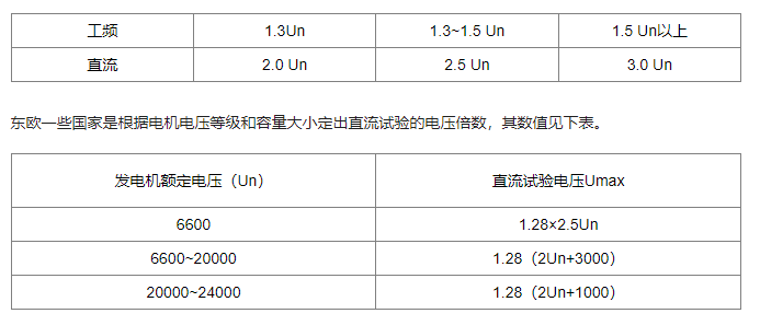 所謂直流試驗電壓與交流試驗電壓的對應關系,是指它們之間等效性的一定規律。但實際上由于電機的幾何結構和絕緣材料的性能不同,直流和交流電壓的分布也就不同,故很難得到一個嚴密的規律。