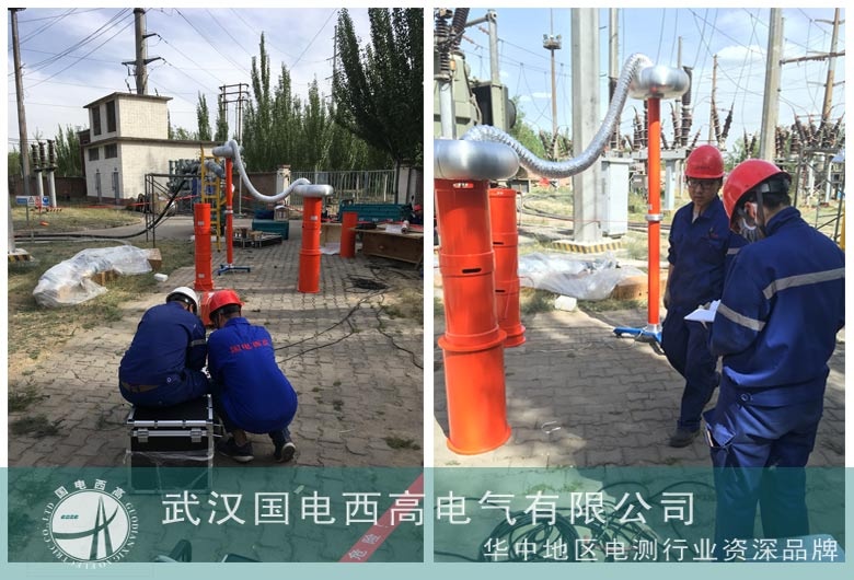 在給客戶講解完設備的理論知識后,我司技術工程師萬工,對設備進行了現場的檢查、組裝、接線,一切就緒后,開始對規格為64/110kV的電纜進行耐壓試驗。試驗準備開始前,結合客戶以及預防性試驗規程所提試驗要求:試驗電壓為兩倍的U0,試驗時間為60分鐘,因此參數試驗電壓選擇128kV,利用五節電抗器串聯的方式進行試驗,試驗結果符合標準。試驗過程中演示了設備的參數設定、接線方式、注意事項等過程,直到客戶充分理解整套設備的使用。