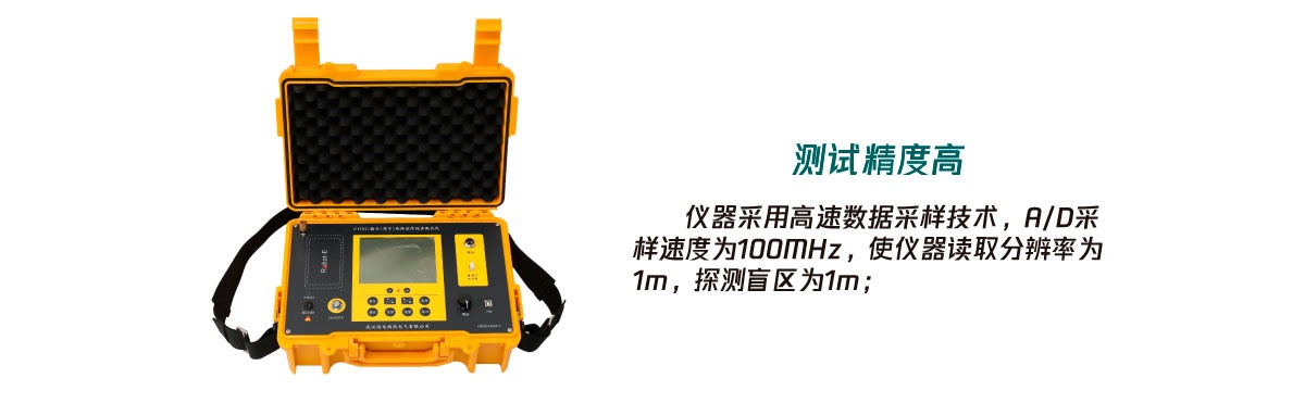 • 測試精度高:儀器采用高速數據采樣技術,A/D采樣速度為100MHz,使儀器讀取分辨率為1m,探測盲區為1m;
