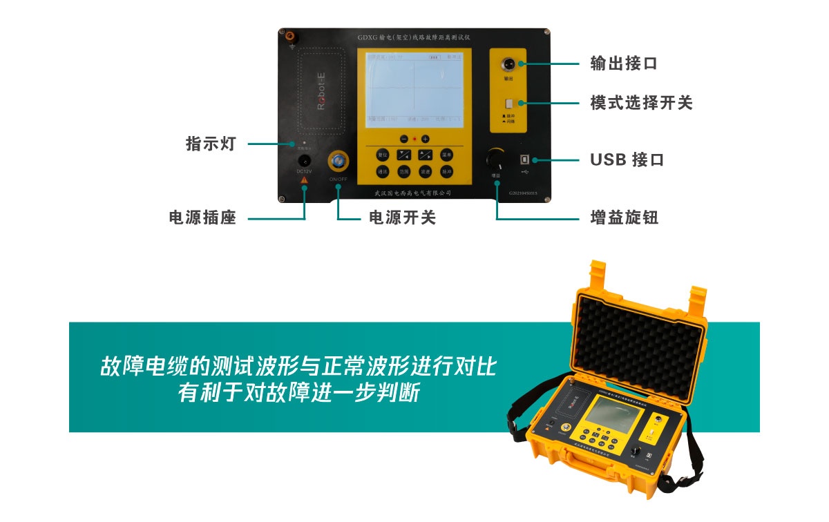 輸電線路故障距離測試儀可測試各種型號的電力電纜(電壓等級1kV~35kV)和市話電纜、調頻通信電纜、同軸電纜及金屬架空線路上發生的短路、接地、和電纜的斷線、接觸不良等故障;并可測試電纜的長度和電波在電纜上的傳播速度。