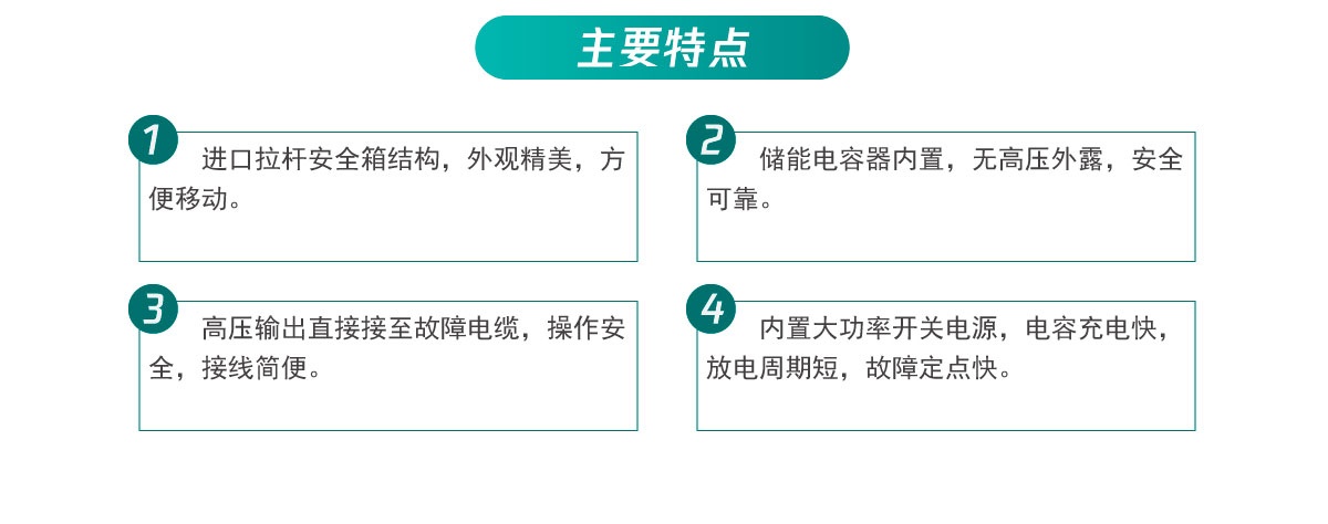 · 內(nèi)置大功率開關(guān)電源,電容充電快,放電周期短,故障定點(diǎn)快;