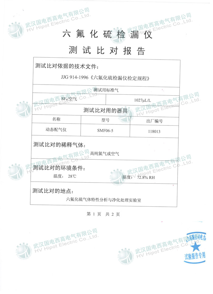 GDWG-IV型SF6氣體定量檢漏儀,則是通過了安徽省電力科學研究院(國家電網SF6氣體實驗室)氣體濃度檢測。相比較國內其他廠家,我公司產品有著檢測速度快,檢測數據穩定,準確的優點。得到了安徽院專家的認可。