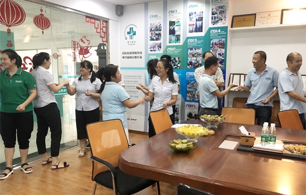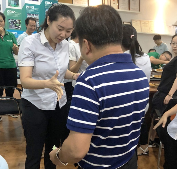 13日下午,我們在會議室集合,大家一起做“中秋送月餅”互動游戲。活動開始前,每人制作一張祝福卡,寫上中秋祝福語。游戲期間兩兩一組喊出游戲口號,然后手指比劃1-5任意數字,按照1>5>4>3>2>1的規則判定輸贏,獲勝者將會得到對方的祝福卡,獲得福卡最多的人會獲得神秘大獎。