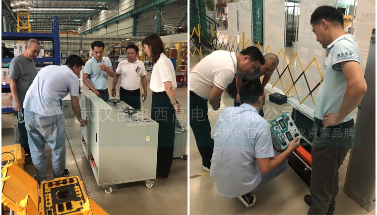 隨后一同前往生產車間詳細了解我們的生產流程、裝配過程、質檢程序等內容。在生產車間,我們的技術員對其客戶感興趣的GDTF系列串諧試驗裝置做了實地演示。