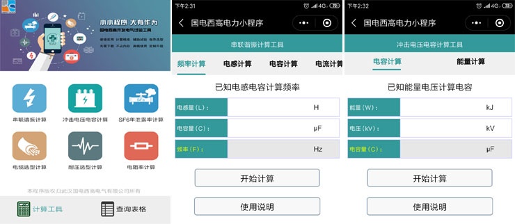 國電西高一直致力于為廣大的電力行業從事人員提供更便捷的試驗工具。近日,我司開發的國電西高小程序正式上線,本款小程序主要為廣大的電力測試人員提供電力試驗相關的計算工具。