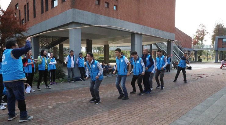 徒步走活動結束后大家在補給點進行了短暫休息之后,又舉行了“拔河”和“跳繩”兩項比賽。兩隊你來我往,勢均力敵。最后“新飛翔隊”以領先兩分的優勢贏得了整個活動的勝利。