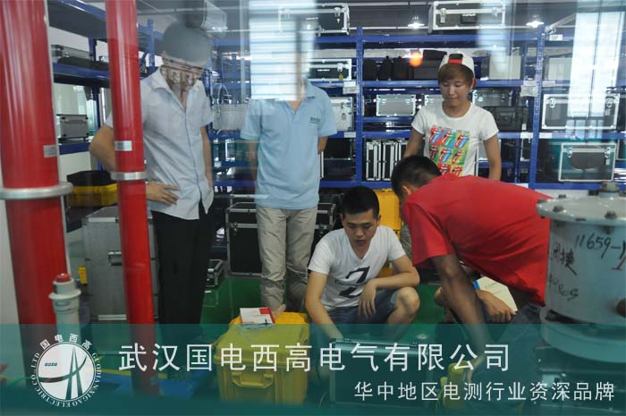 隨后客戶便跟隨我公司的技術人員學習各個電氣設備的使用和注意事項,客戶來學習的第一天下午,就開始跟我公司的技術工程師學習了GDB-II 全自動變比組別測試儀的操作使用。第二天又開始對耐壓裝置進行了一系列探討和試驗。都說人生就是一部活到老,學到老的活字典,年輕時學習是為了事業,中年時學習是為了充實生活,中老年學習是為了跟上時代潮流。這四位遠道而來的客戶的學習勁兒讓國電西高充滿了文化氣息。