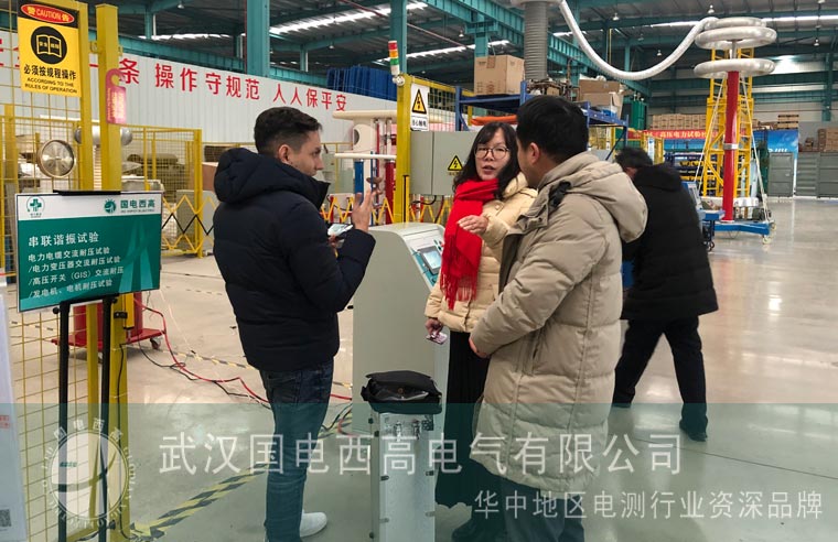 外貿部迎來新年第一位國外客戶來訪,2020年1月哥倫比亞客戶前來驗貨。這筆訂單是年前簽下的訂單,訂單包括30/200的智能耐壓試驗裝置,2000A大電流發生器和20kV沖擊電壓測試儀,都是高電壓 大功率的非常規定制設備。生產部的同事嚴格按照訂單要求完成產品生產,便迎來了客戶的驗貨要求。